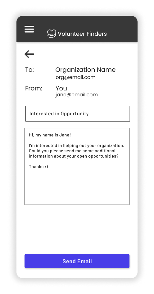 You can also send the initial email contacting the organization directly from the app.